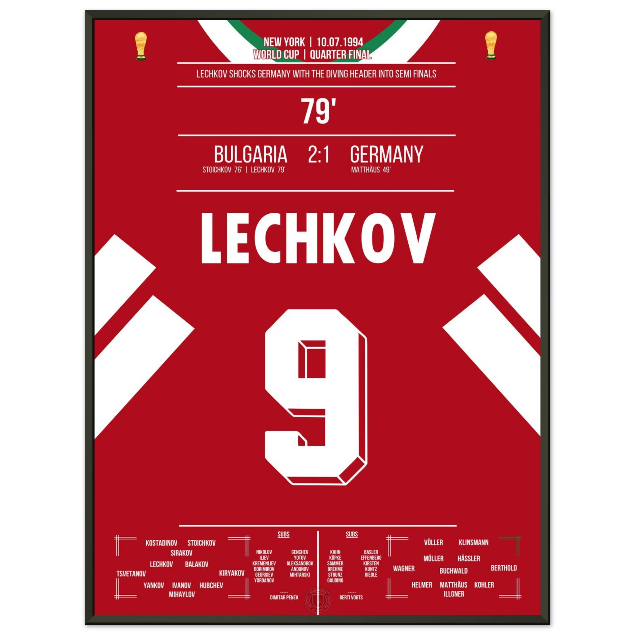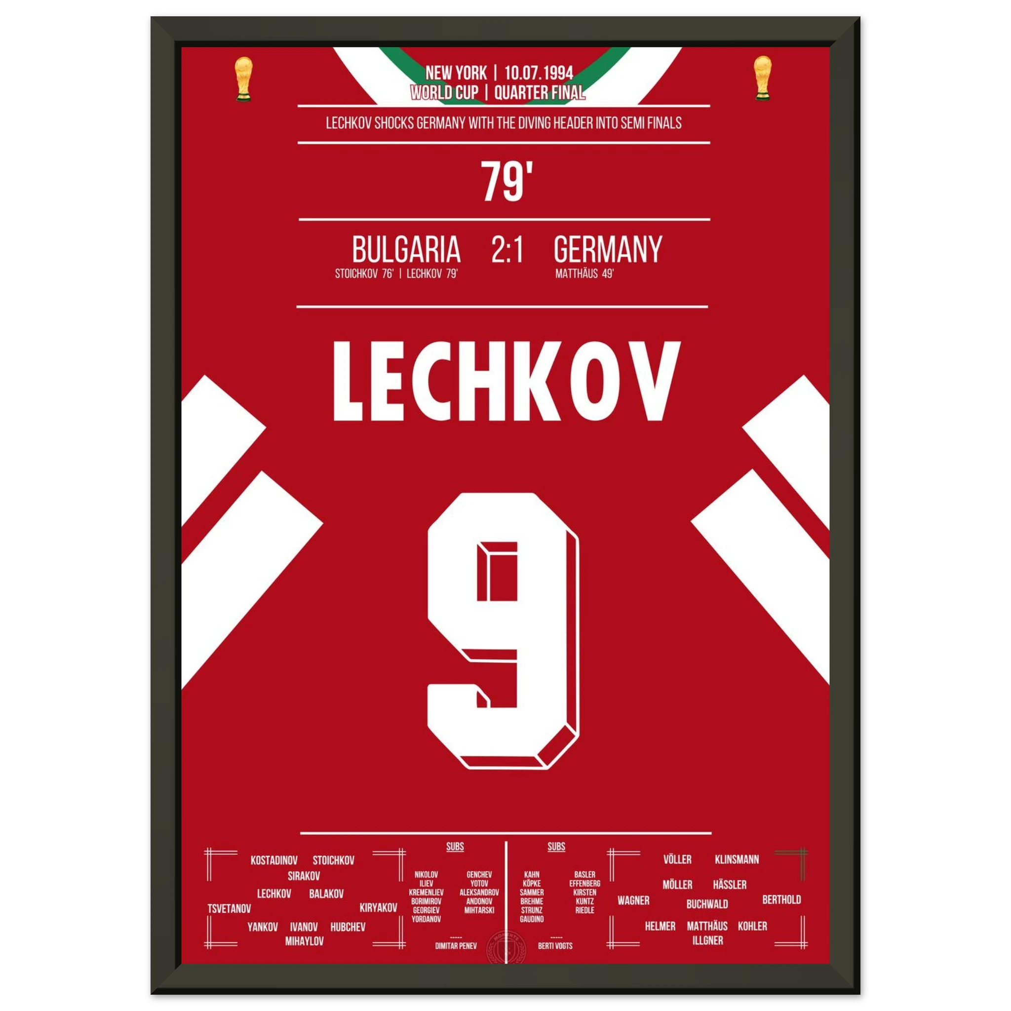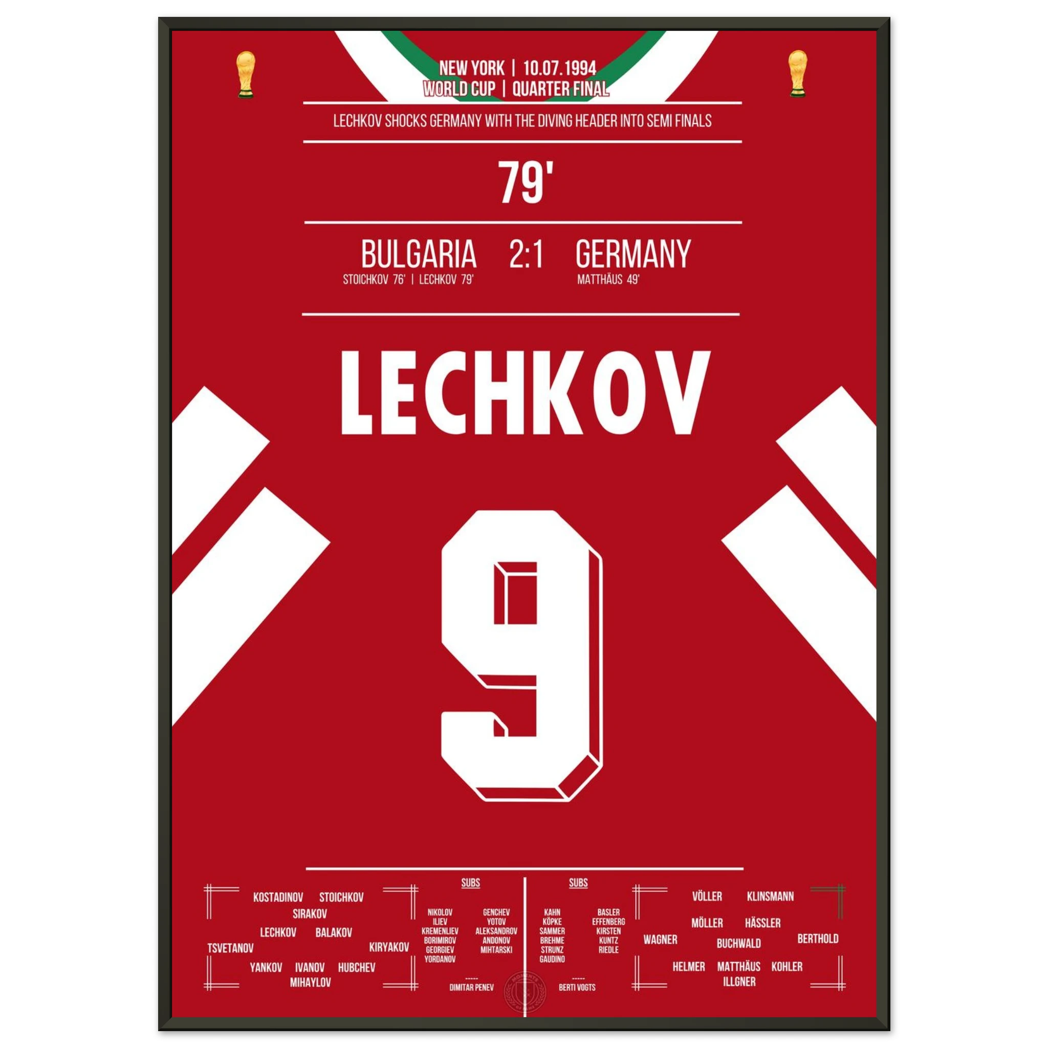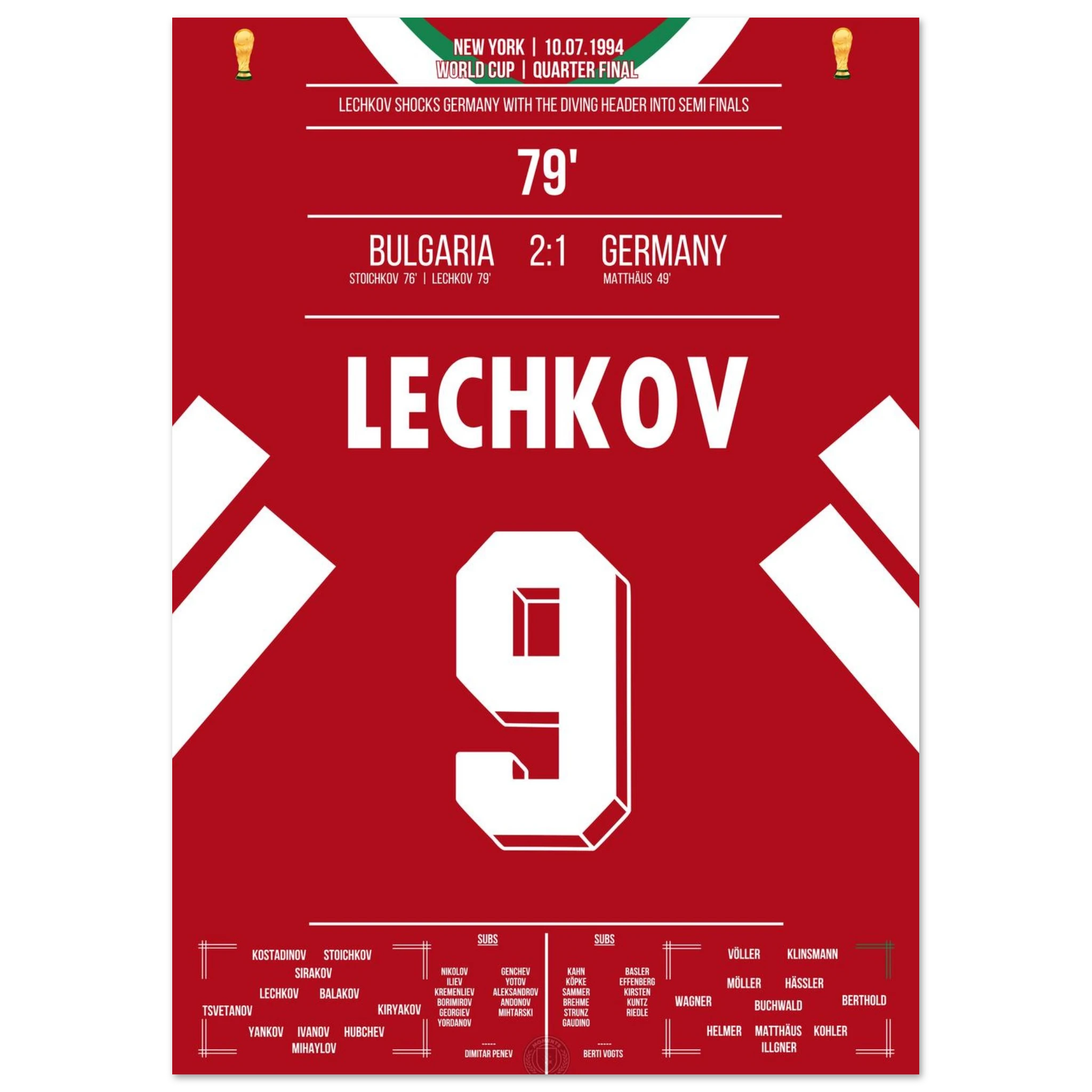 Im WM-Viertelfinale von 1994 schockt Bulgarien den amtierenden Weltmeister. Nachdem Letchkov in der 79. Minute per Flugkopfball trifft, steht das Stadion Kopf – Deutschland ist raus, Bulgarien im Halbfinale! Ein Moment, der zur Legende des bulgarischen Fußballs wurde.