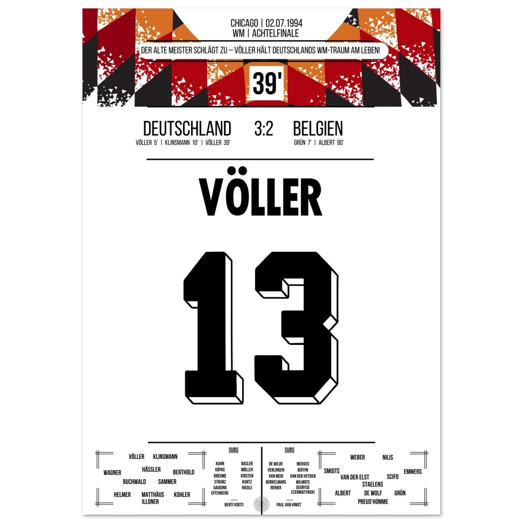 Völler scores twice in Germany's victory in the Round of 16 at the 1994 World Cup.