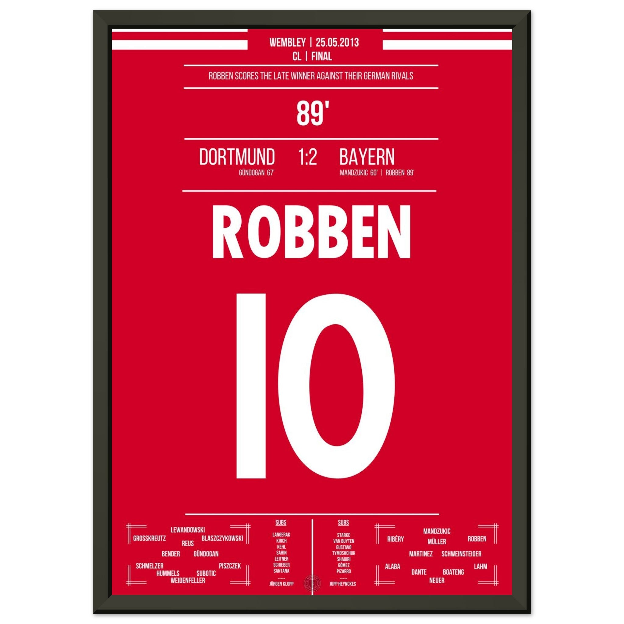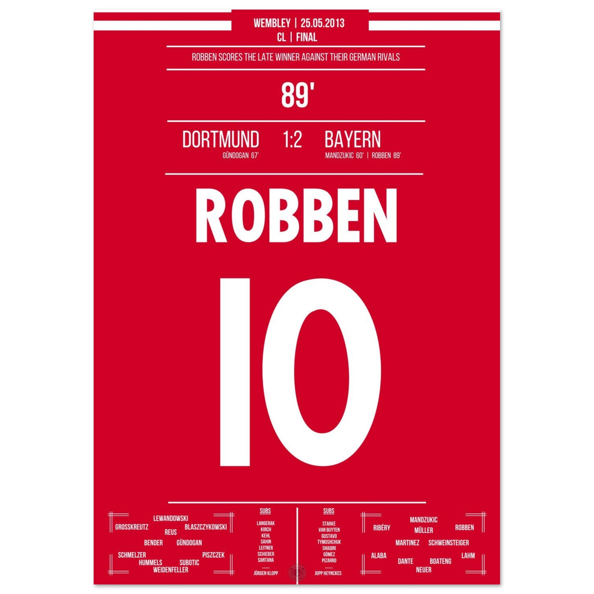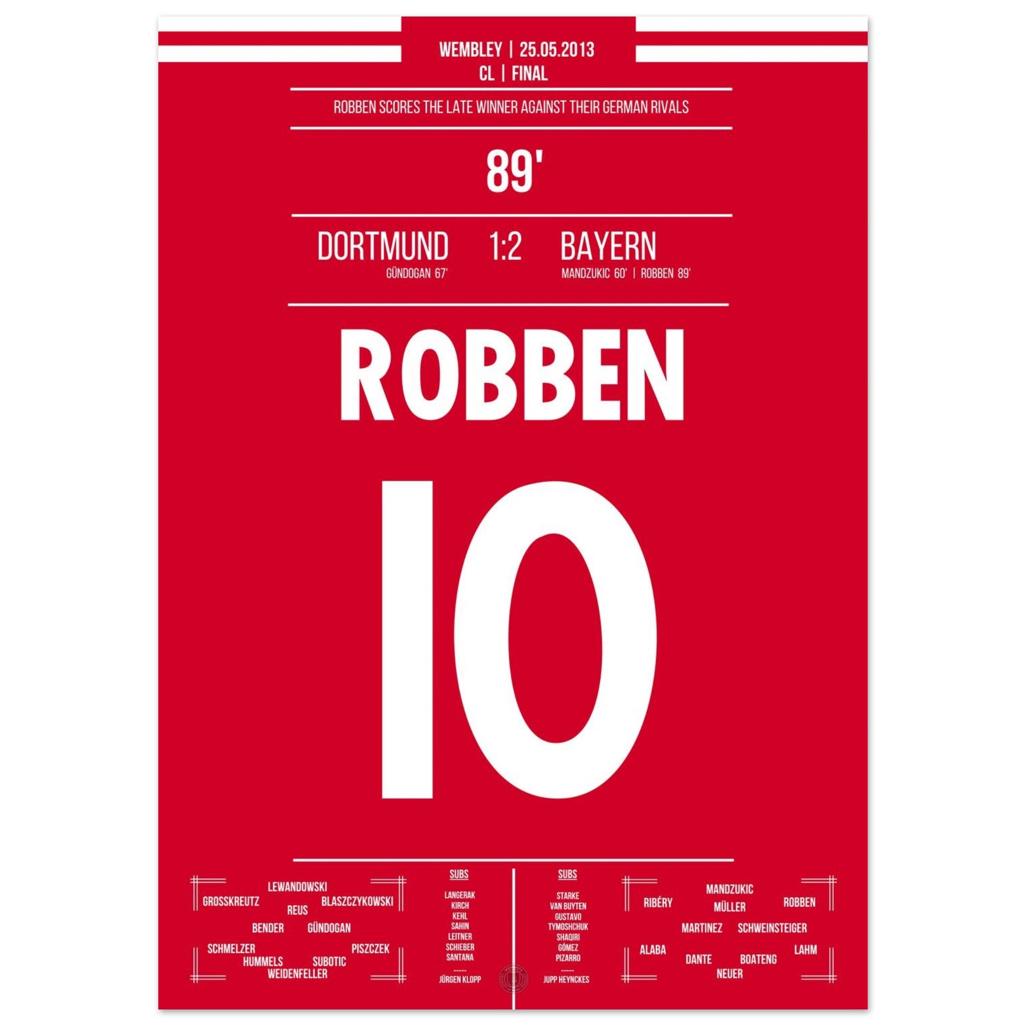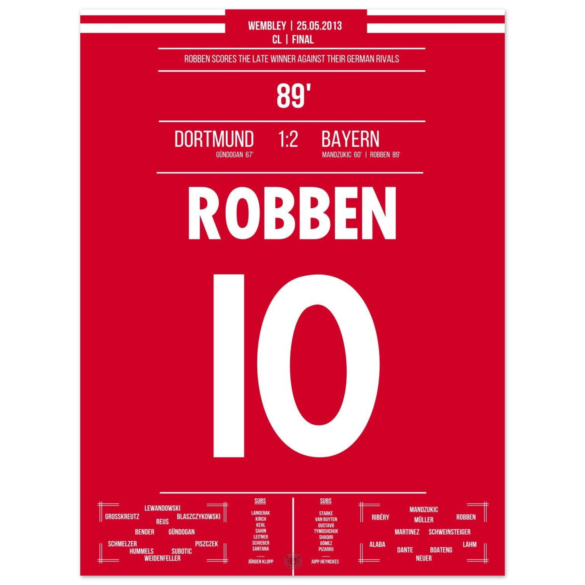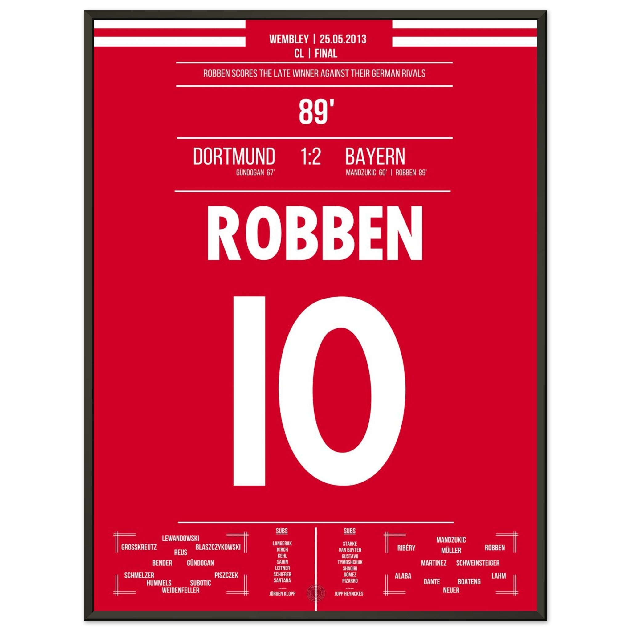 Robben tanzt in der 89. Minute durch die Abwehr und schiebt eiskalt zum Sieg ein. Mit diesem späten Treffer entscheidet er das CL-Finale – Ekstase bei München, bittere Enttäuschung bei Dortmund.