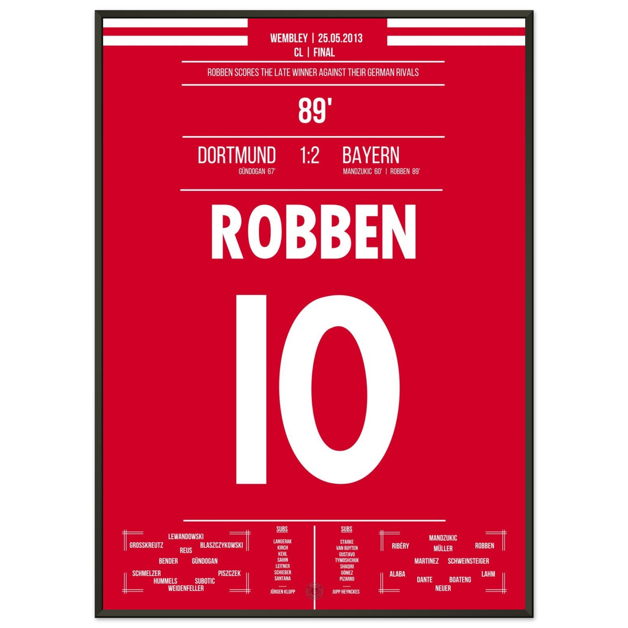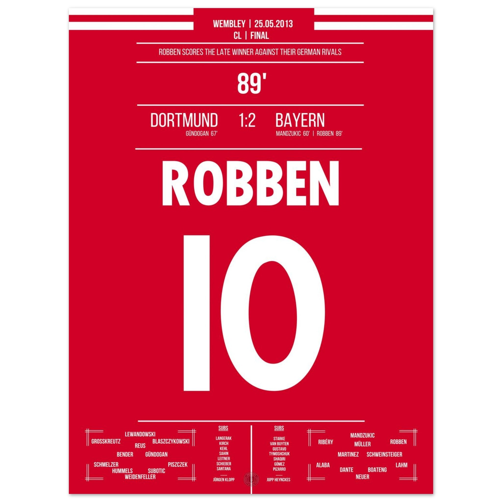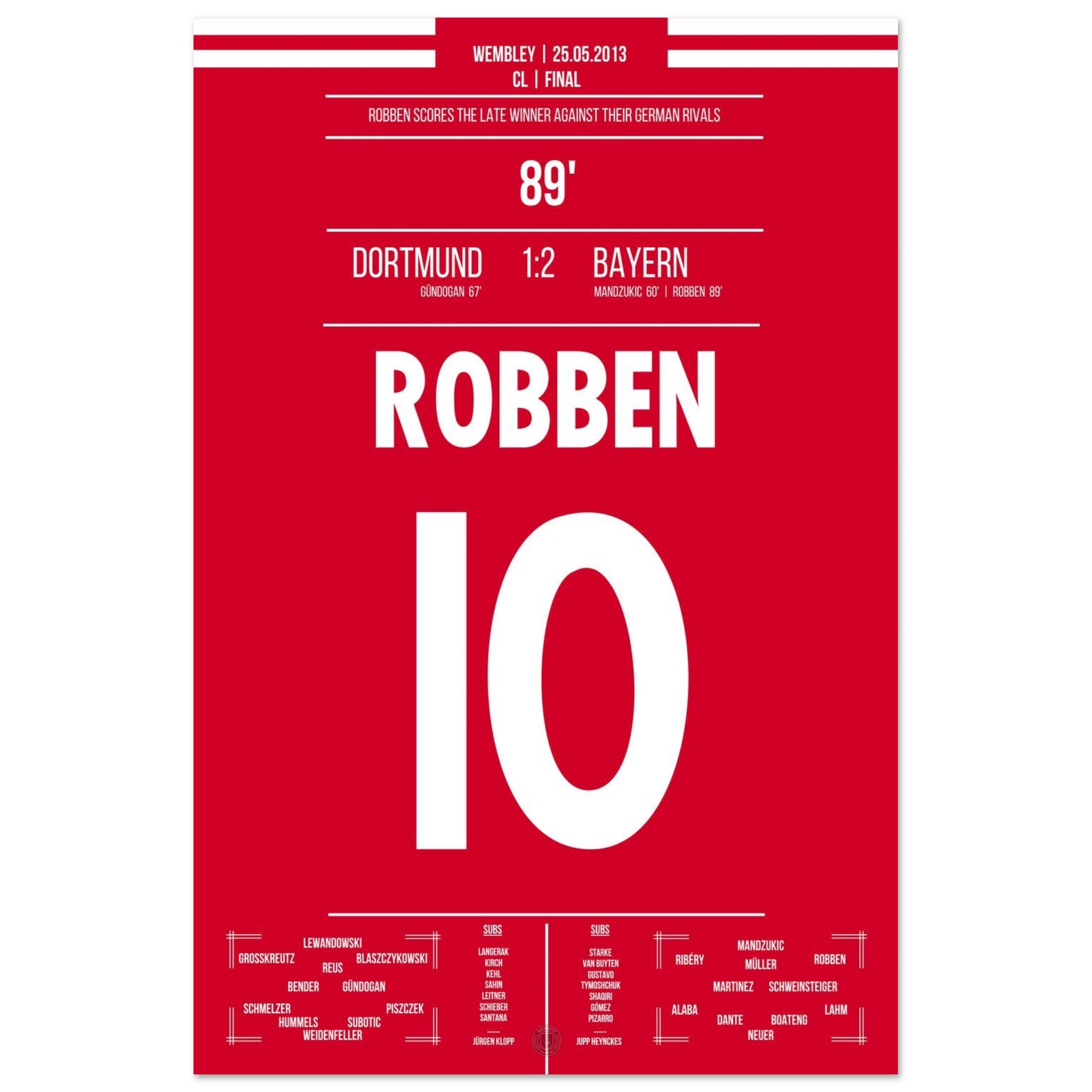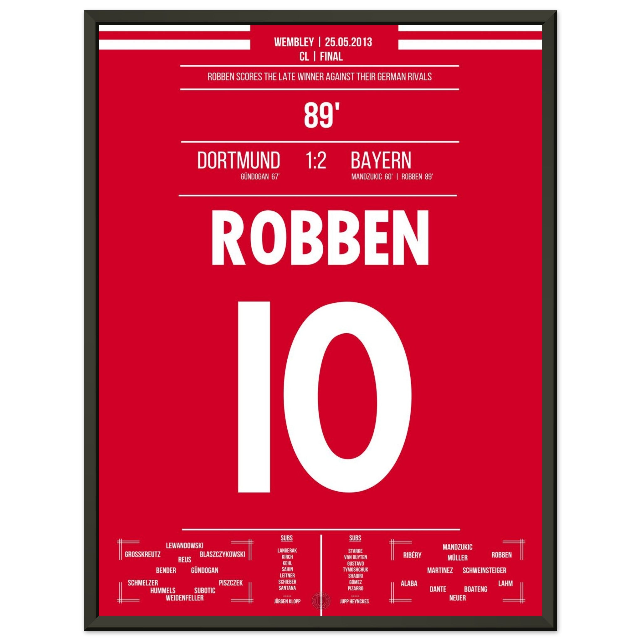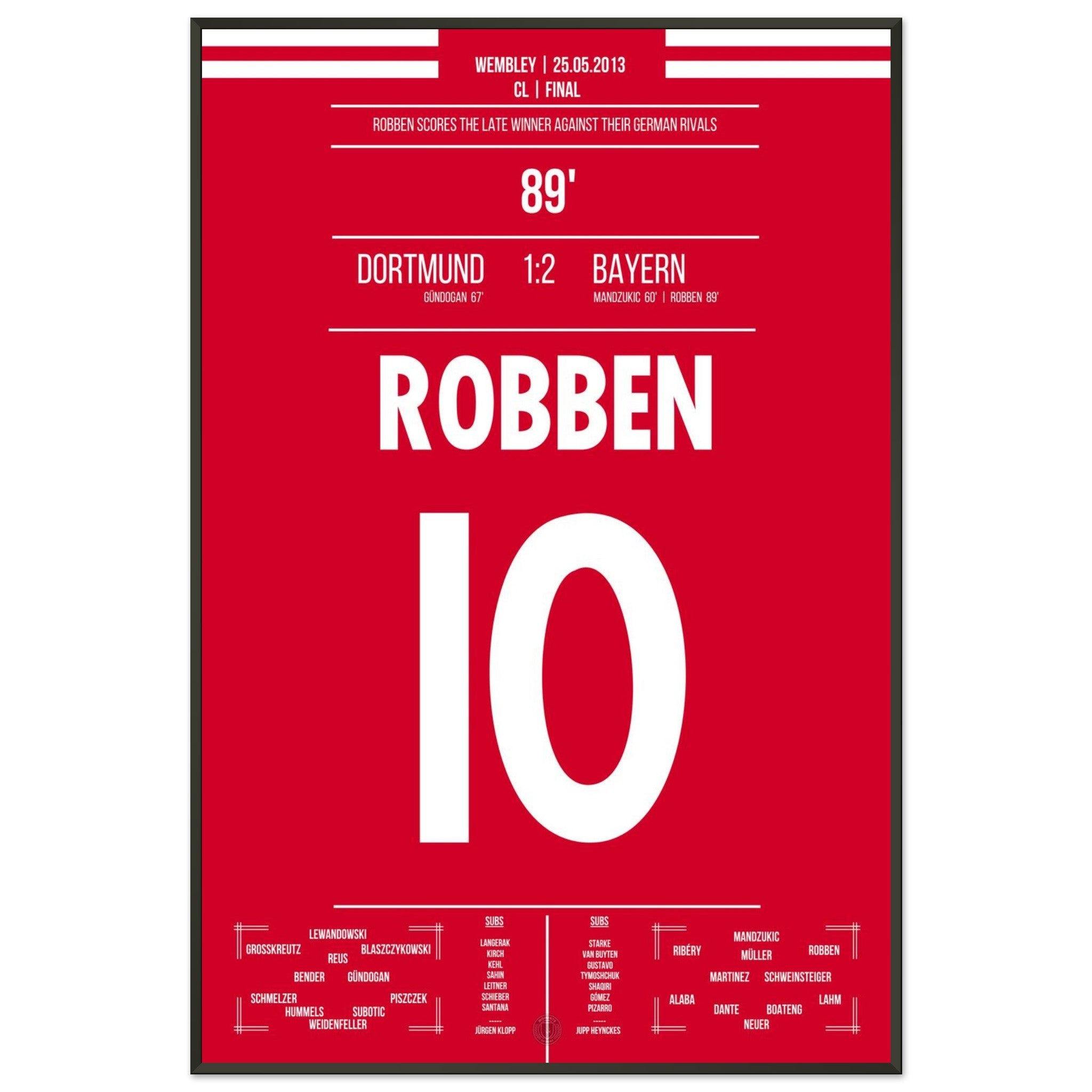 Robben tanzt in der 89. Minute durch die Abwehr und schiebt eiskalt zum Sieg ein. Mit diesem späten Treffer entscheidet er das CL-Finale – Ekstase bei München, bittere Enttäuschung bei Dortmund.