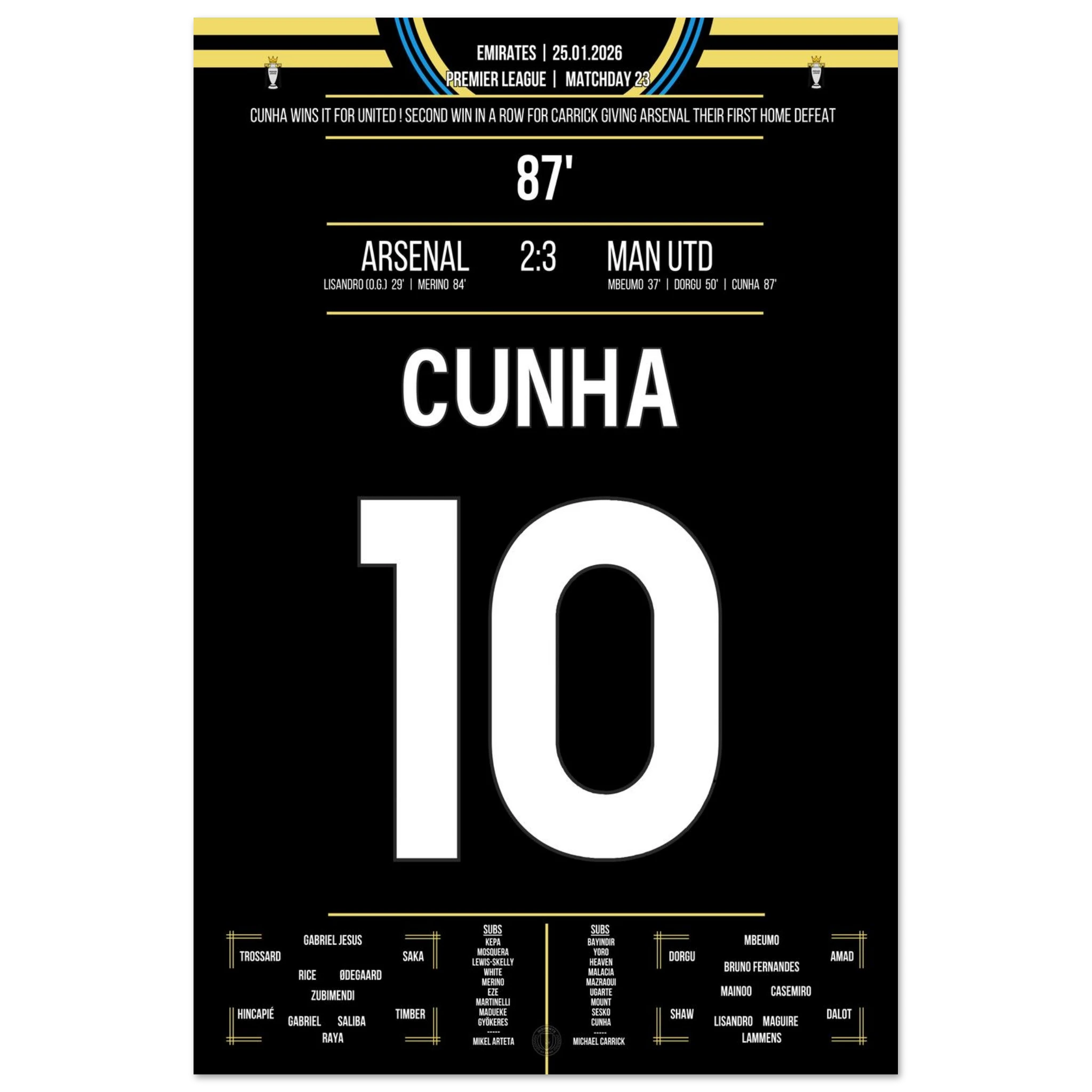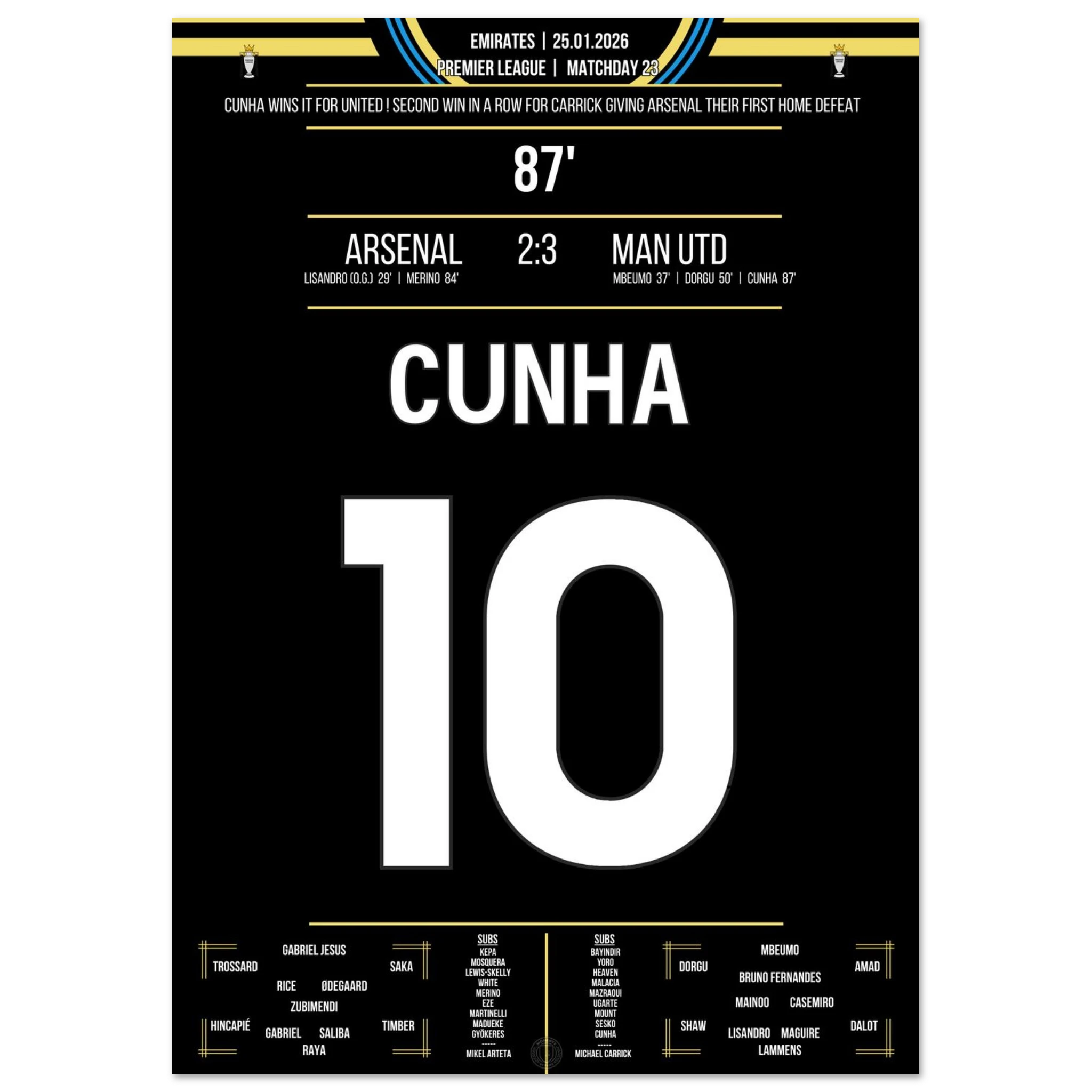 25. Januar 2026 – Arsenal vs. Man United 2:3 – Spätes Drama im Emirates! ⚽🔴