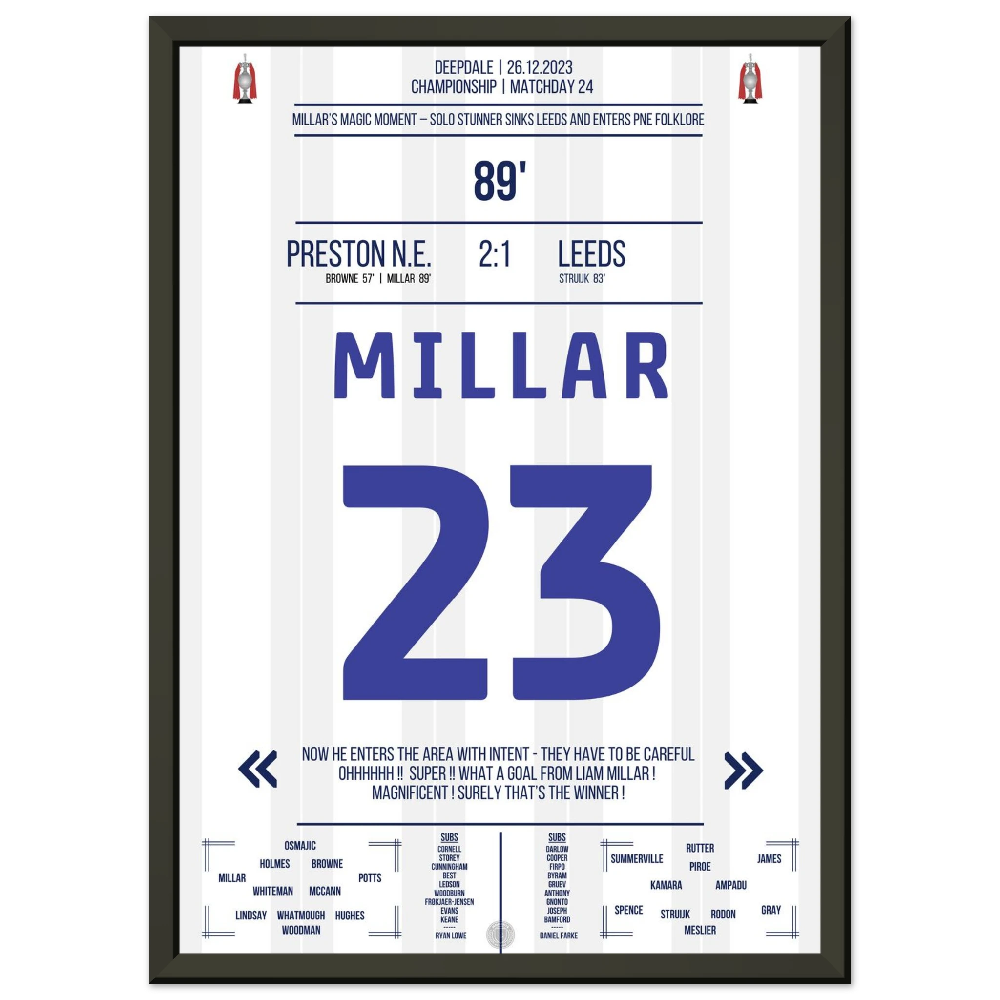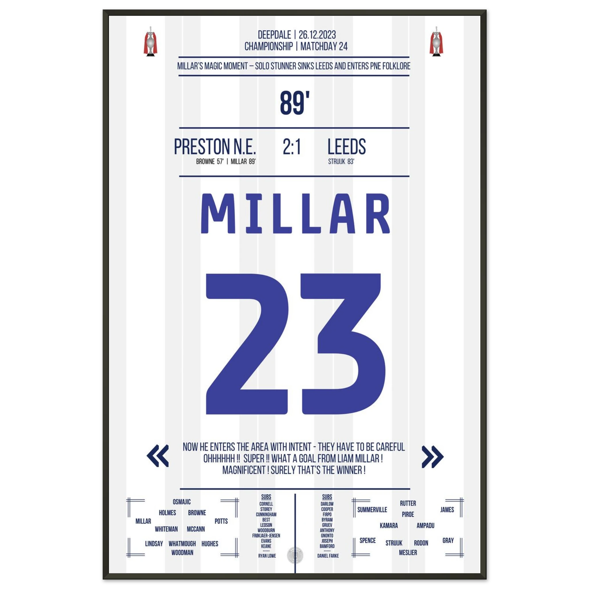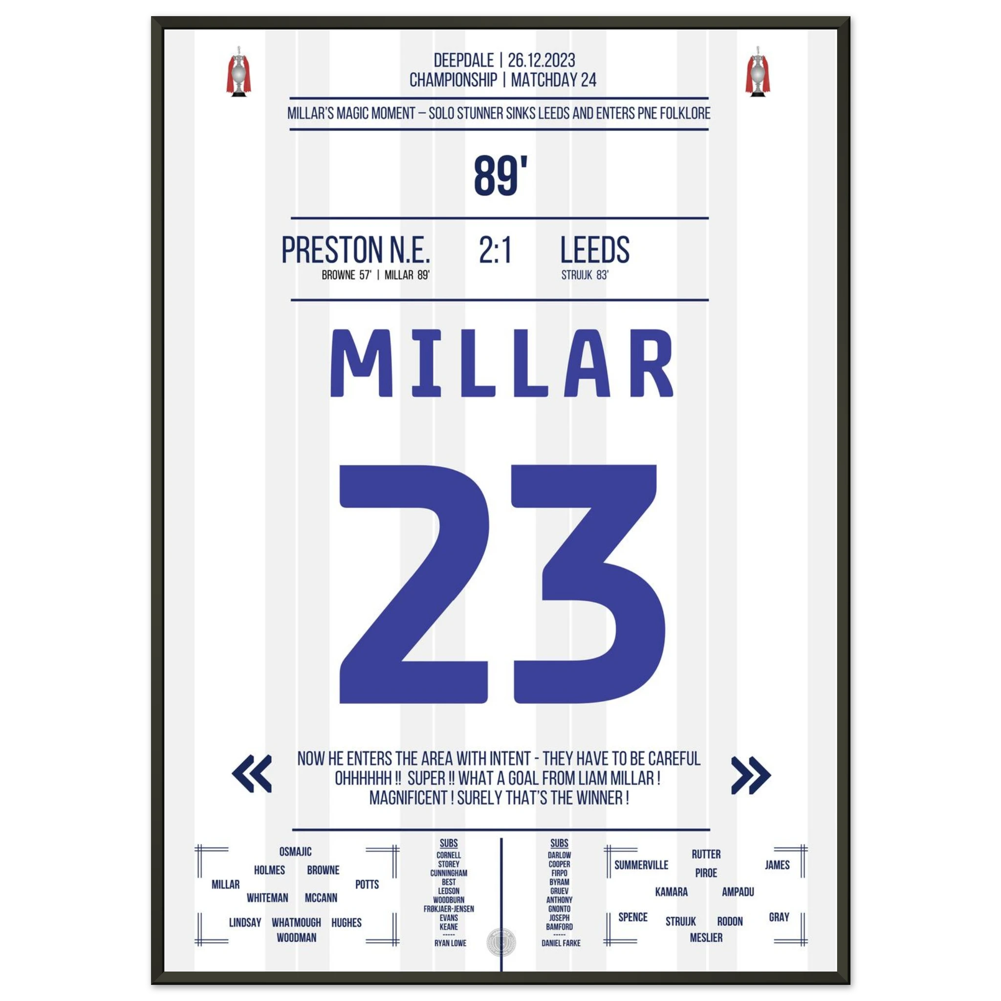 26. Dezember 2023 – Preston vs. Leeds 2:1 – Millars magischer Boxing Day! 🎯🔥