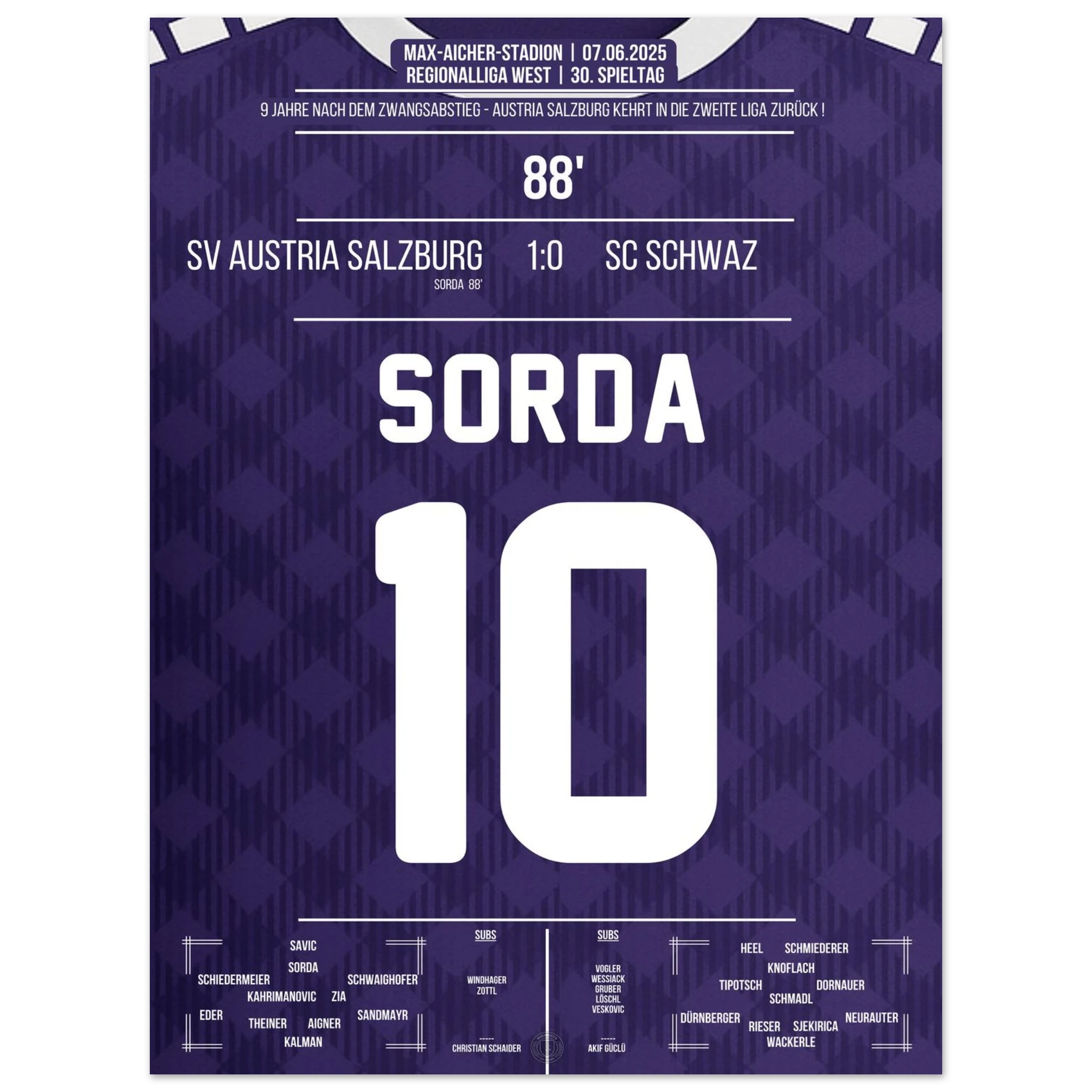 Sorda trifft kurz vor Schluss und Salzburg kehrt zurück in den Profifussball