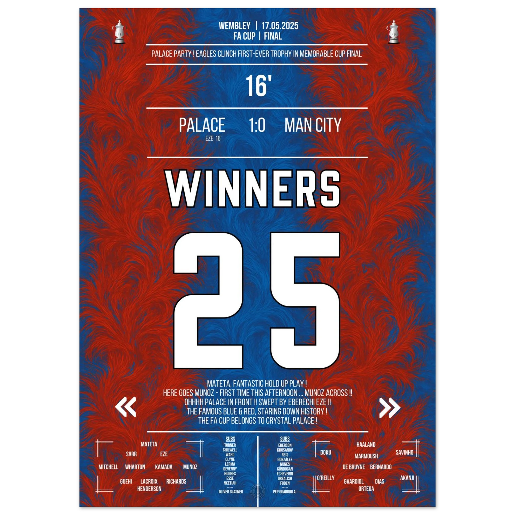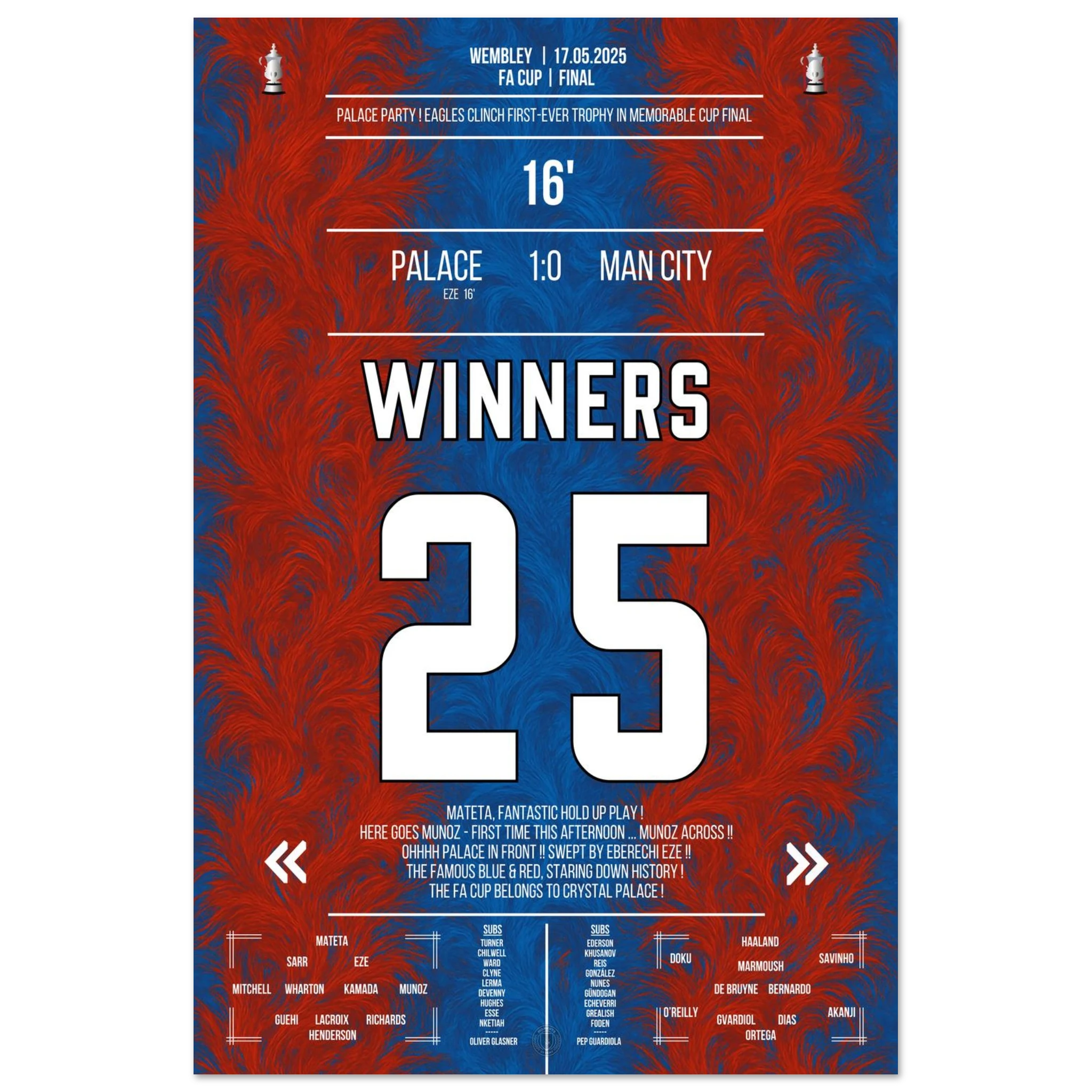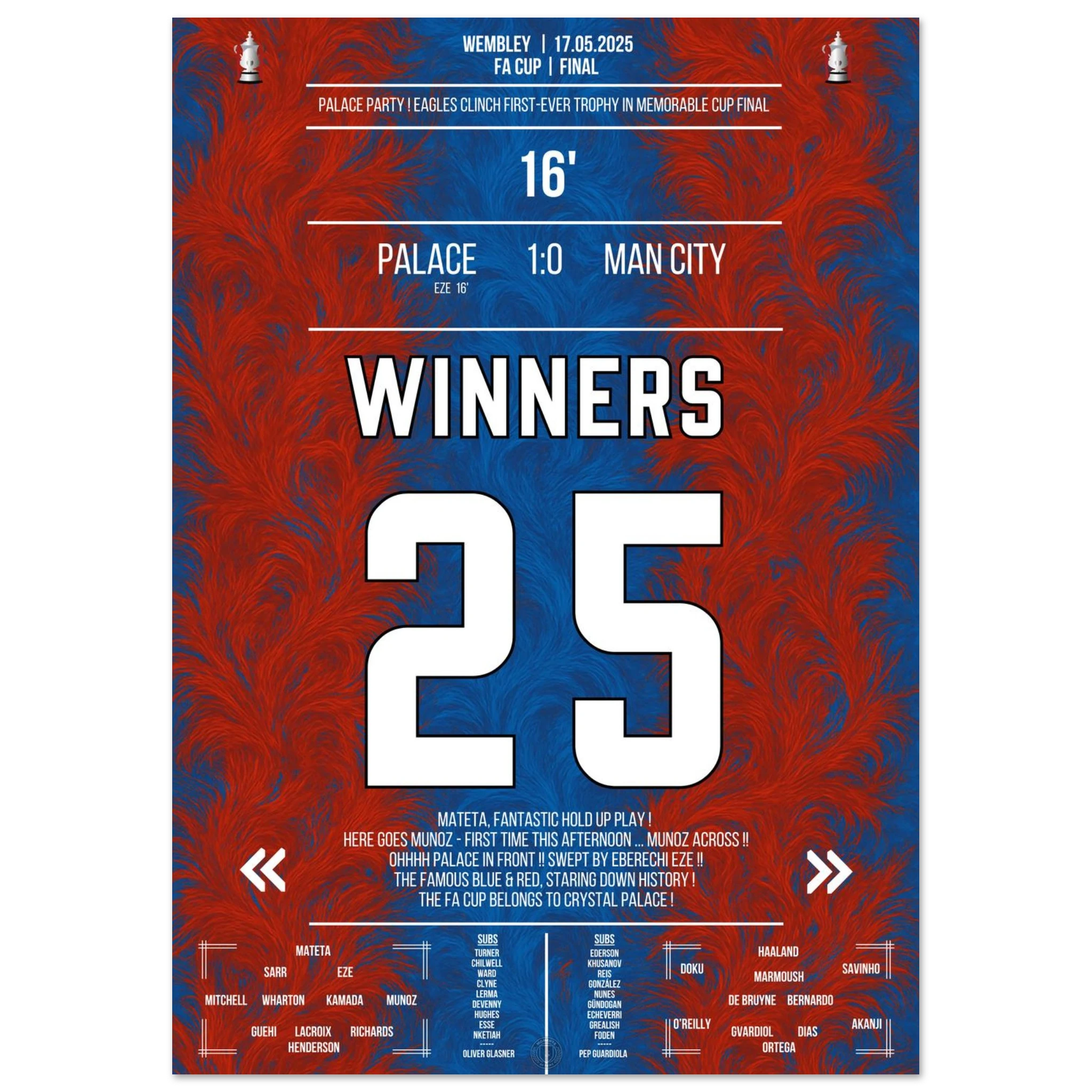 Unser Poster hält diesen unvergesslichen Sieg fest – ein Triumph des Glaubens und der Magie von Croydon. 🦅✨