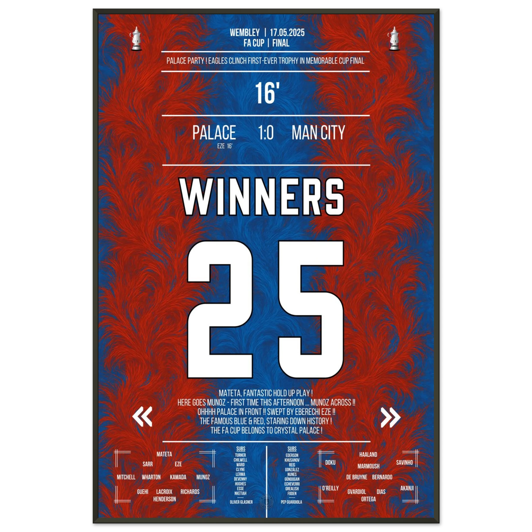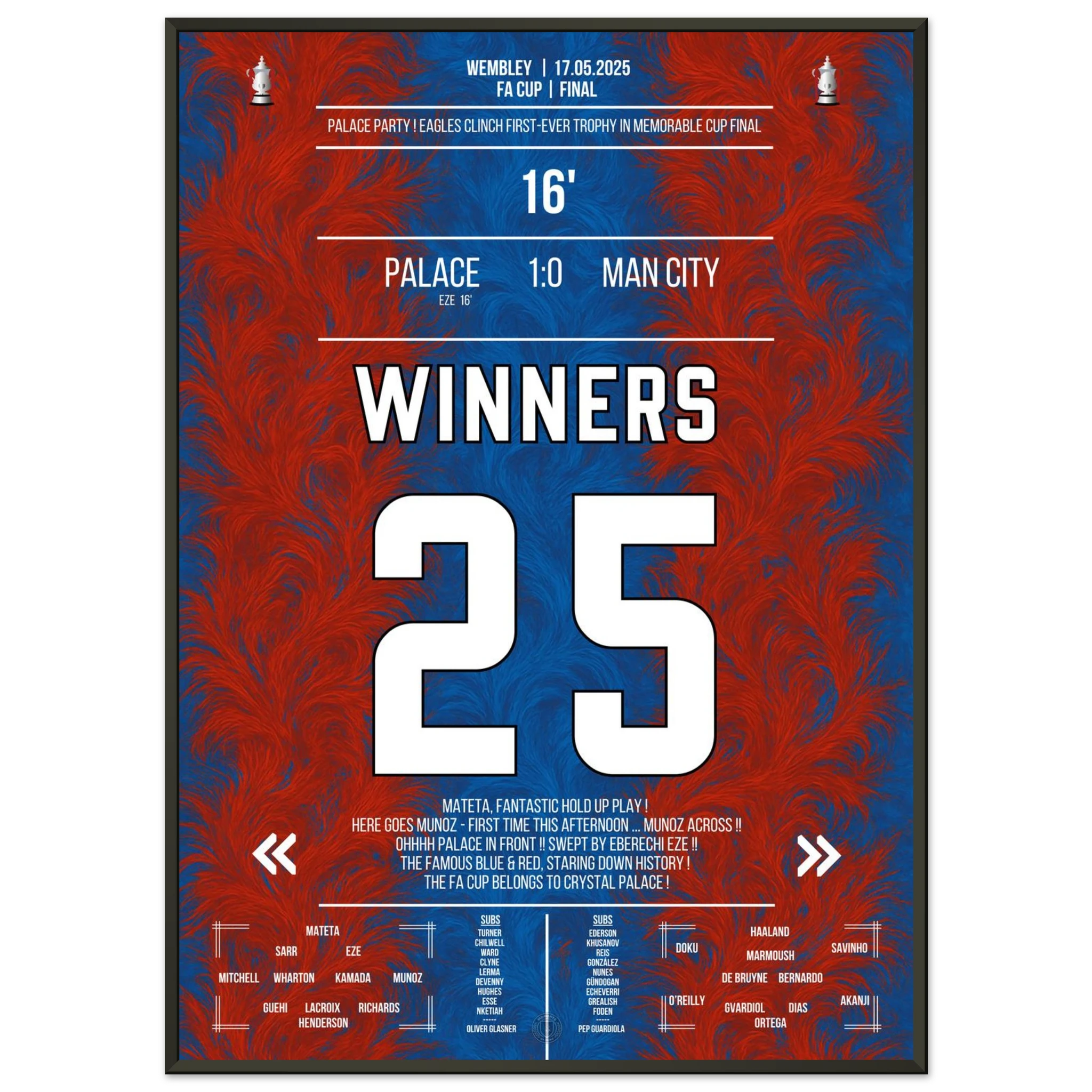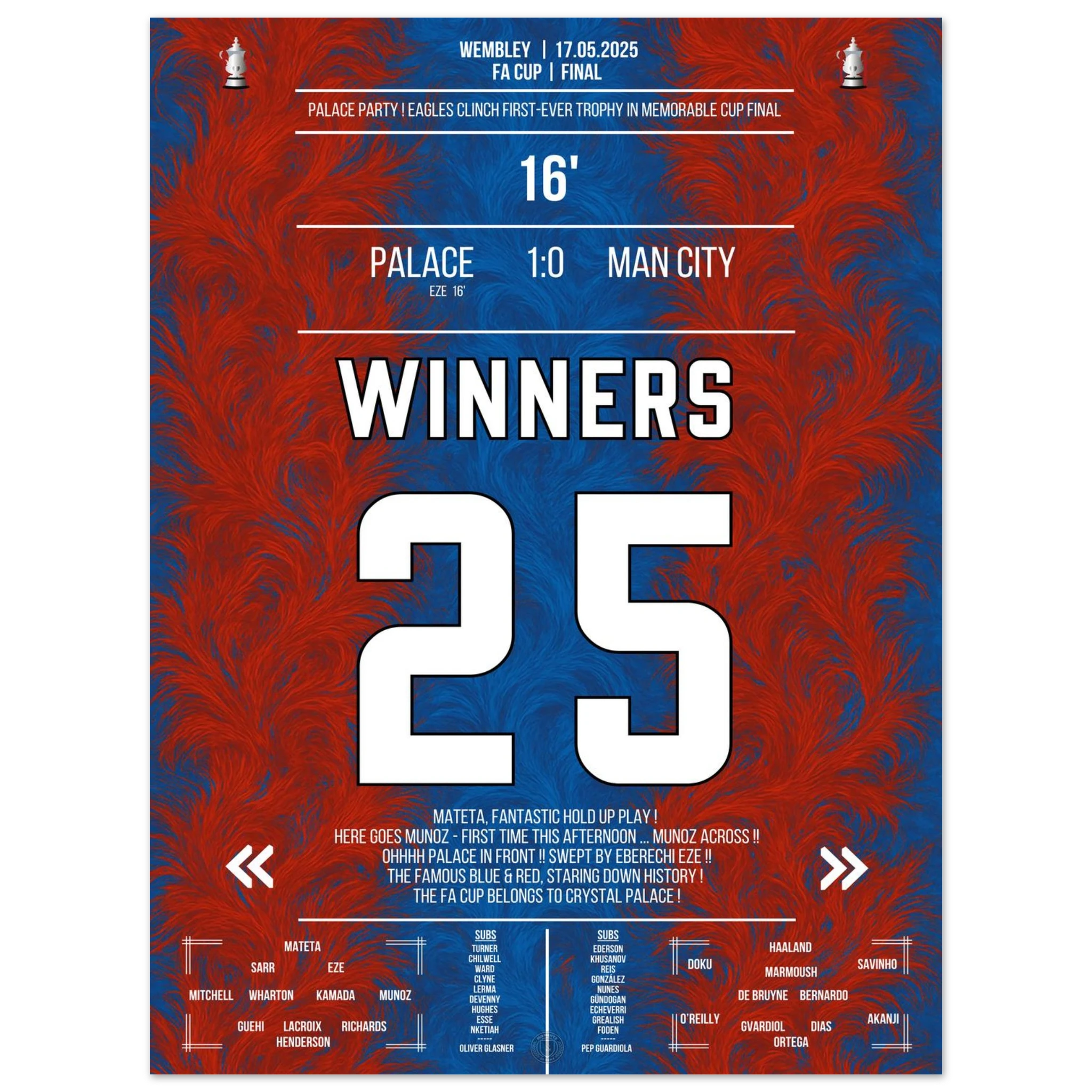 Unser Poster hält diesen unvergesslichen Sieg fest – ein Triumph des Glaubens und der Magie von Croydon. 🦅✨