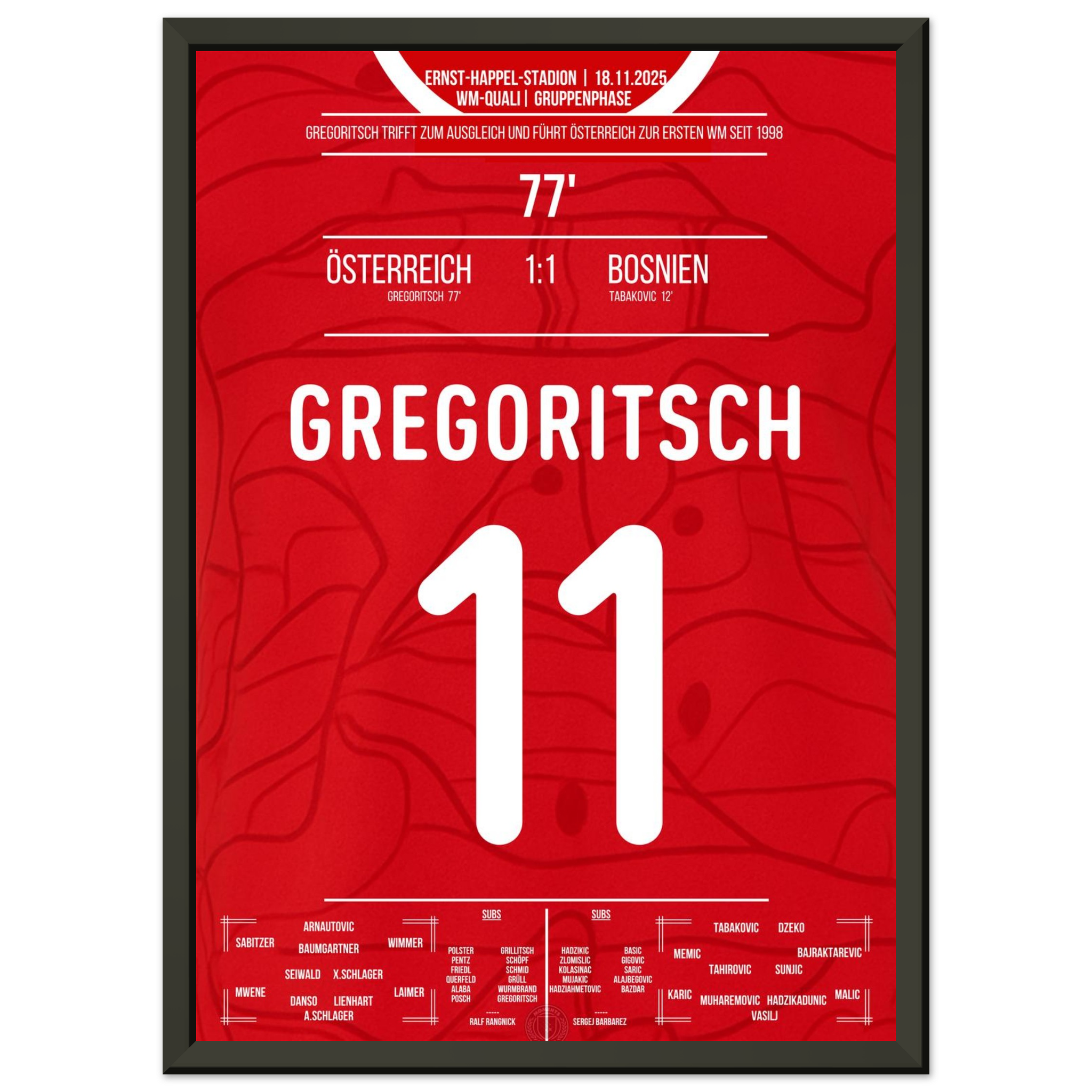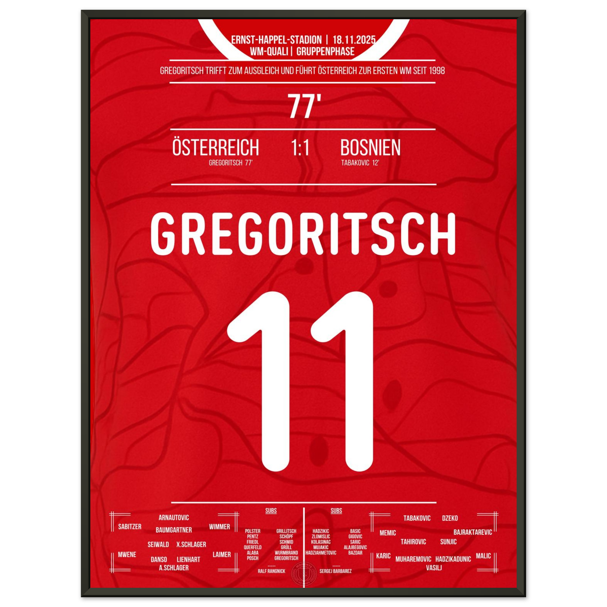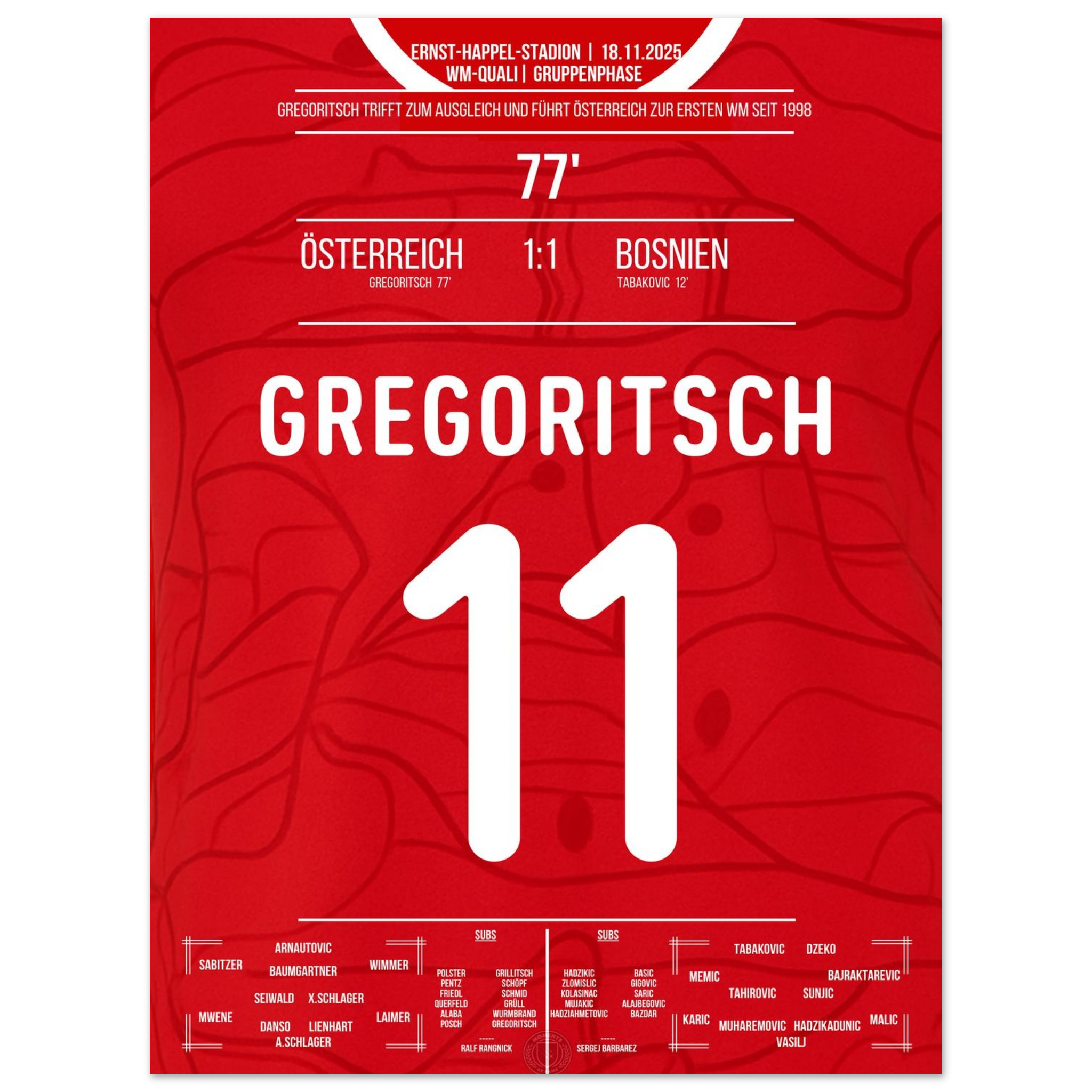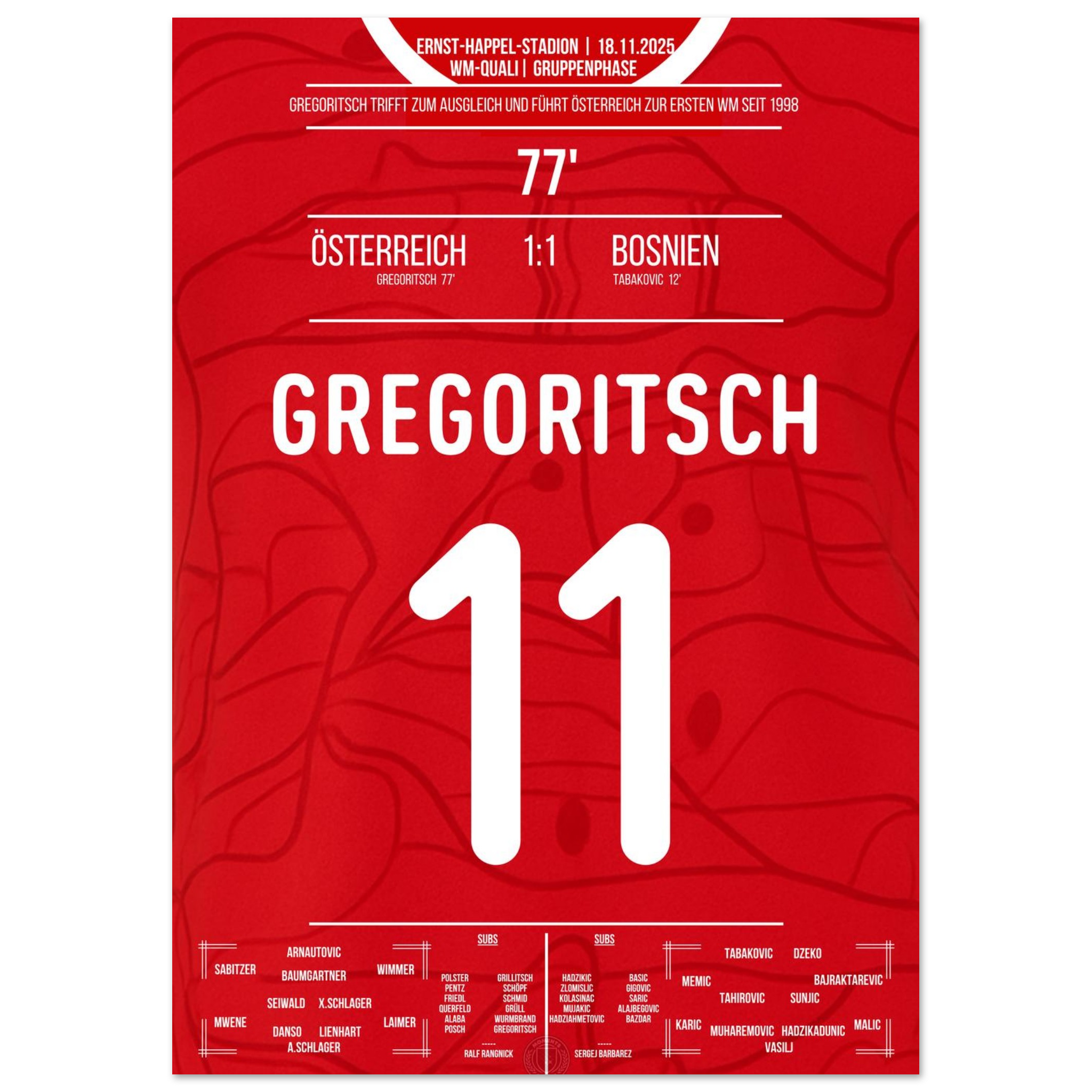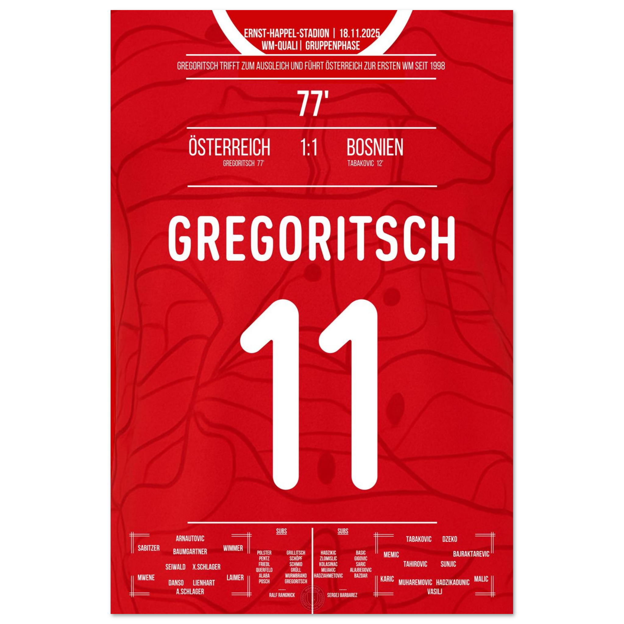 Dieses Poster feiert den Moment, in dem ein Tor zur Erlösung wurde – und Rot-Weiß-Rot wieder auf die Weltbühne zurückkehrte.